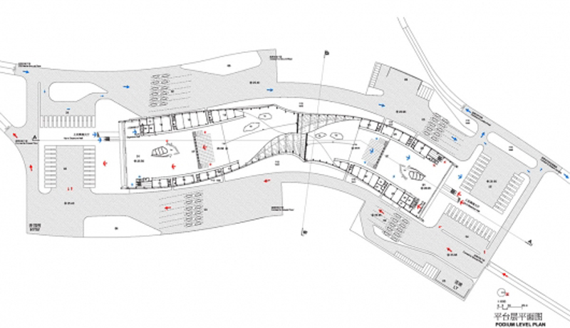 A circulação por essas prateleiras de livros é feita através de passarelas metálicas que permitem vãos maiores e ausência de pilares, proporcionando continuidade ao ambiente.